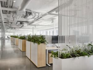 Dans le monde d’aujourd’hui où les espaces de travail deviennent de plus en plus centrés sur le bien-être des employés, la conception biophilique émerge comme une solution innovante pour améliorer non seulement la productivité, mais aussi le bonheur et la santé des travailleurs. Chez A+, nous adorons intégrer des éléments biophiliques dans nos projets, créant ainsi des espaces qui favorisent la connexion avec la nature et améliorent le bien-être de ceux qui les utilisent.