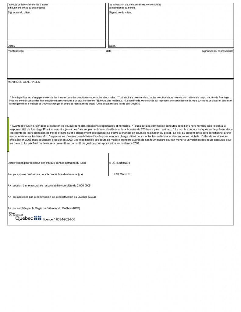 Une fois les documents de planification de projet, les plans et devis ainsi que l’offre de service officielle complétés et lorsque l’équipe A+ et le client sont prêt à officialiser l’entente contractuelle, il y a signature de l’offre de service et approbation par le client des différents documents préparés lors de la phase de planification du projet. C’est à ce moment qu’une date officielle est établie pour le début des travaux.