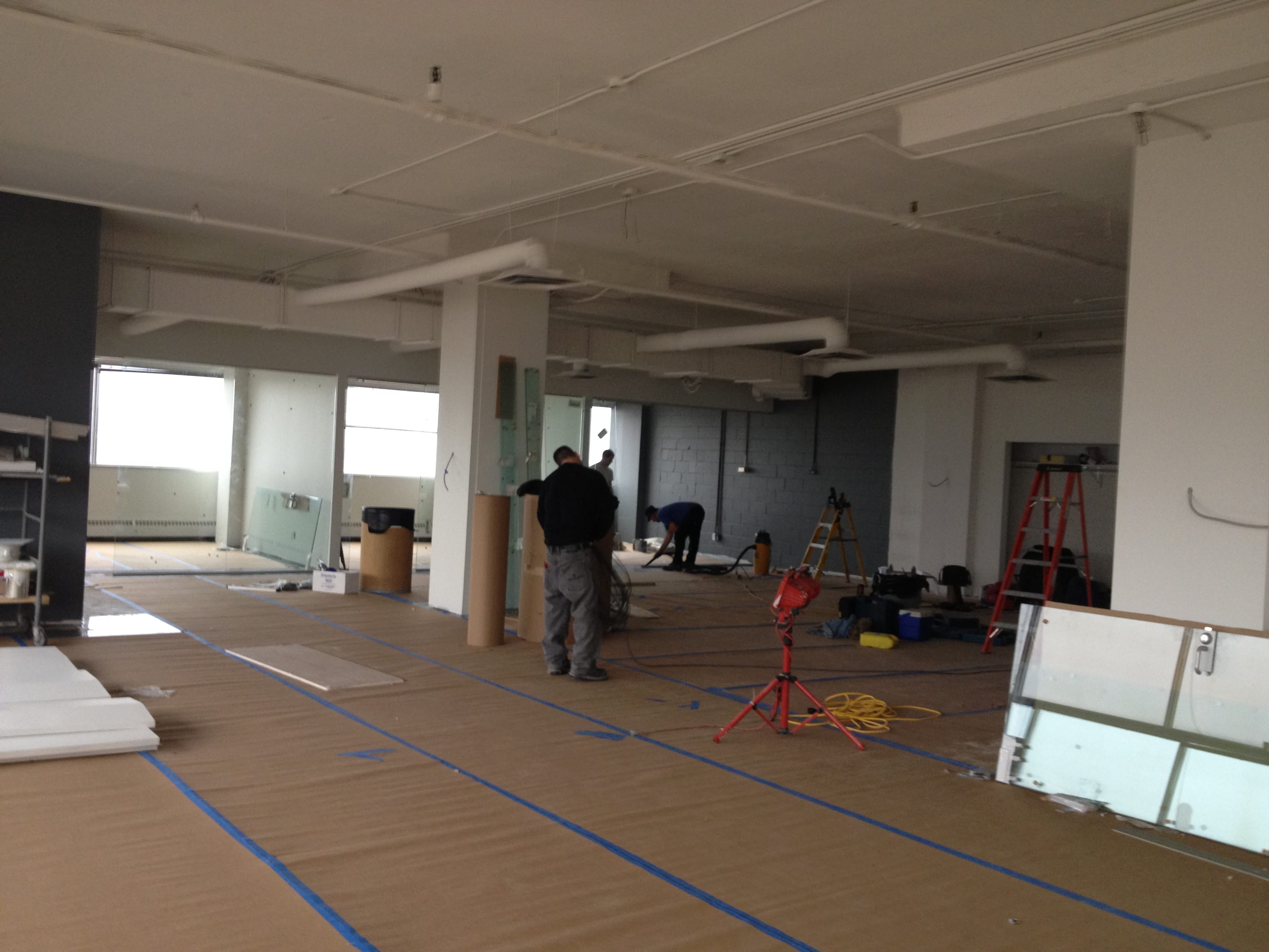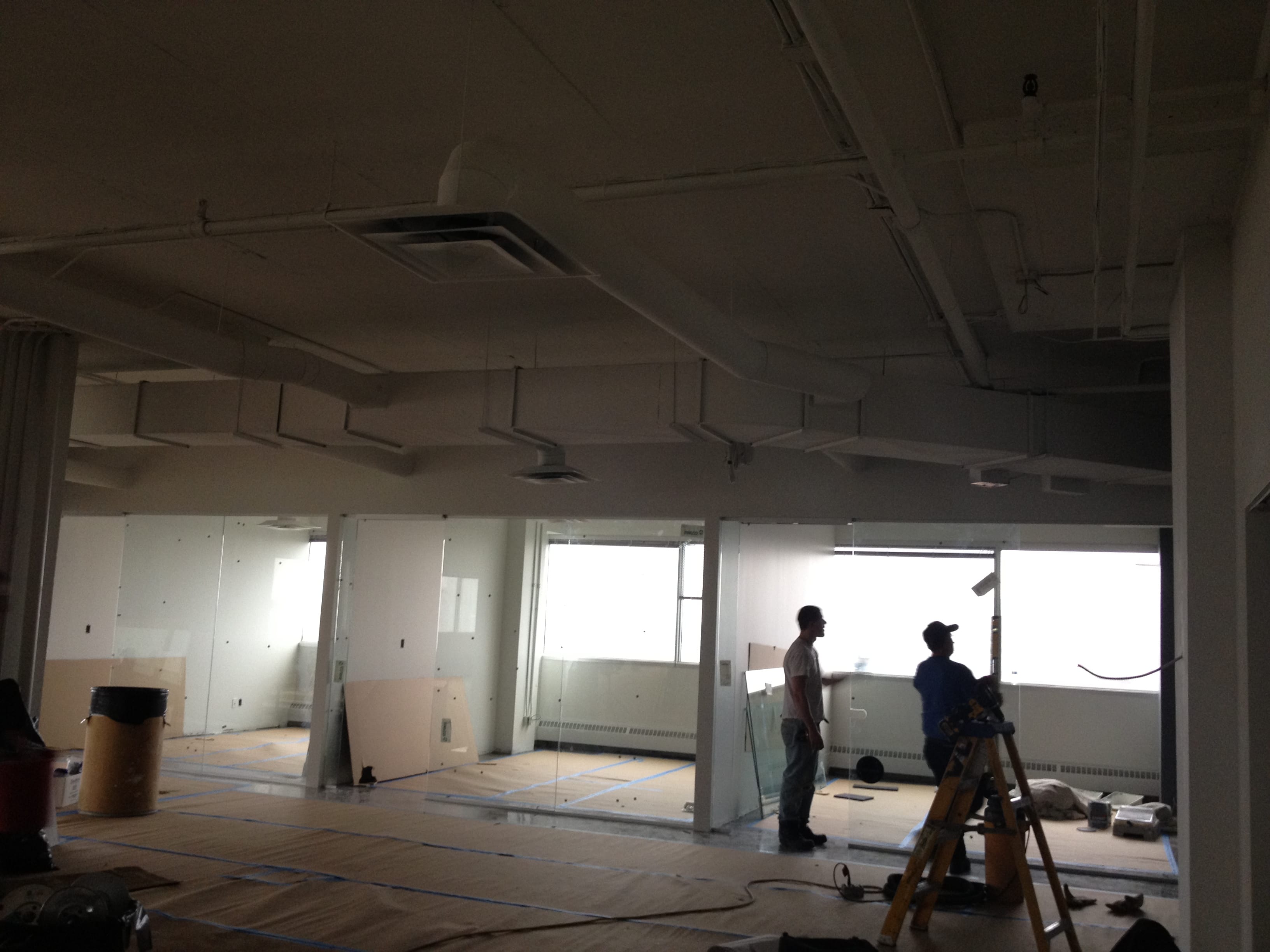 Après maintenant 2 mois de rénovation des futurs bureaux de Iprospect, nous sommes à maintenant 2 semaines de la livraison finale du projet. Les travaux de mécanique et de système intérieur étant 100% complétés, nous procédons cette semaine à l’installation des panneaux de verre qui ferons effet de mur pour plusieurs des bureaux fermés. Vous trouverez dans le présent papier une couverture visuelle de de l’avancement de ce projet de rénovation commerciale situé au centre ville de Montréal. Dans le semaine à venir, nous devrions dévoiler le premier déploiement du mobilier fait sur mesure pour le projet. Bonne visite!