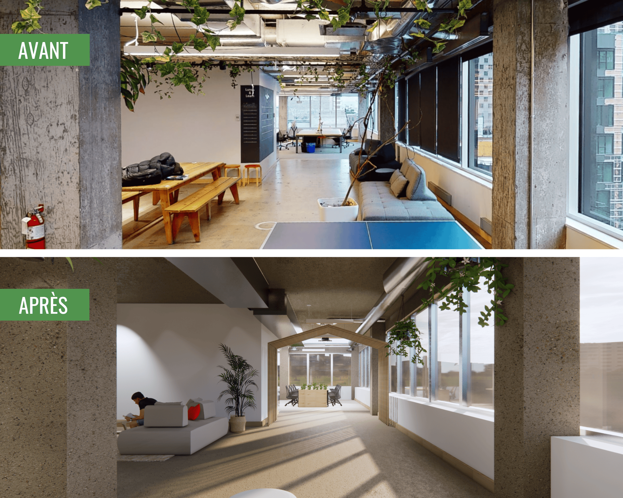 En tant que partenaire en conception et construction d’espaces, lorsqu’il y a beaucoup de sous-locations sur le marché, on est appelé à réaliser plus souvent des « rétrofits » d’espaces. Qu’est-ce qu’un rétrofit? C’est une pratique qui permet de se réapproprier les lieux existants, les optimiser en les modernisant et en les rendant plus efficaces, plus éco-énergétiques et mieux adaptés aux besoins des utilisateurs.