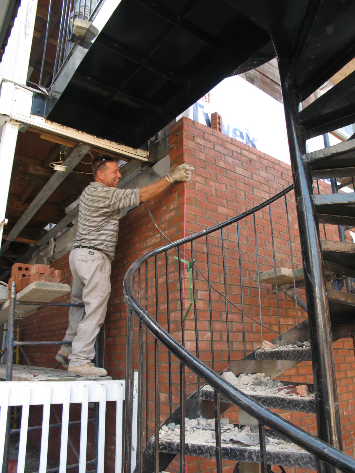 - nettoyage à l’acide muriatique et brossage de toutes les sections de mur rebriqueté