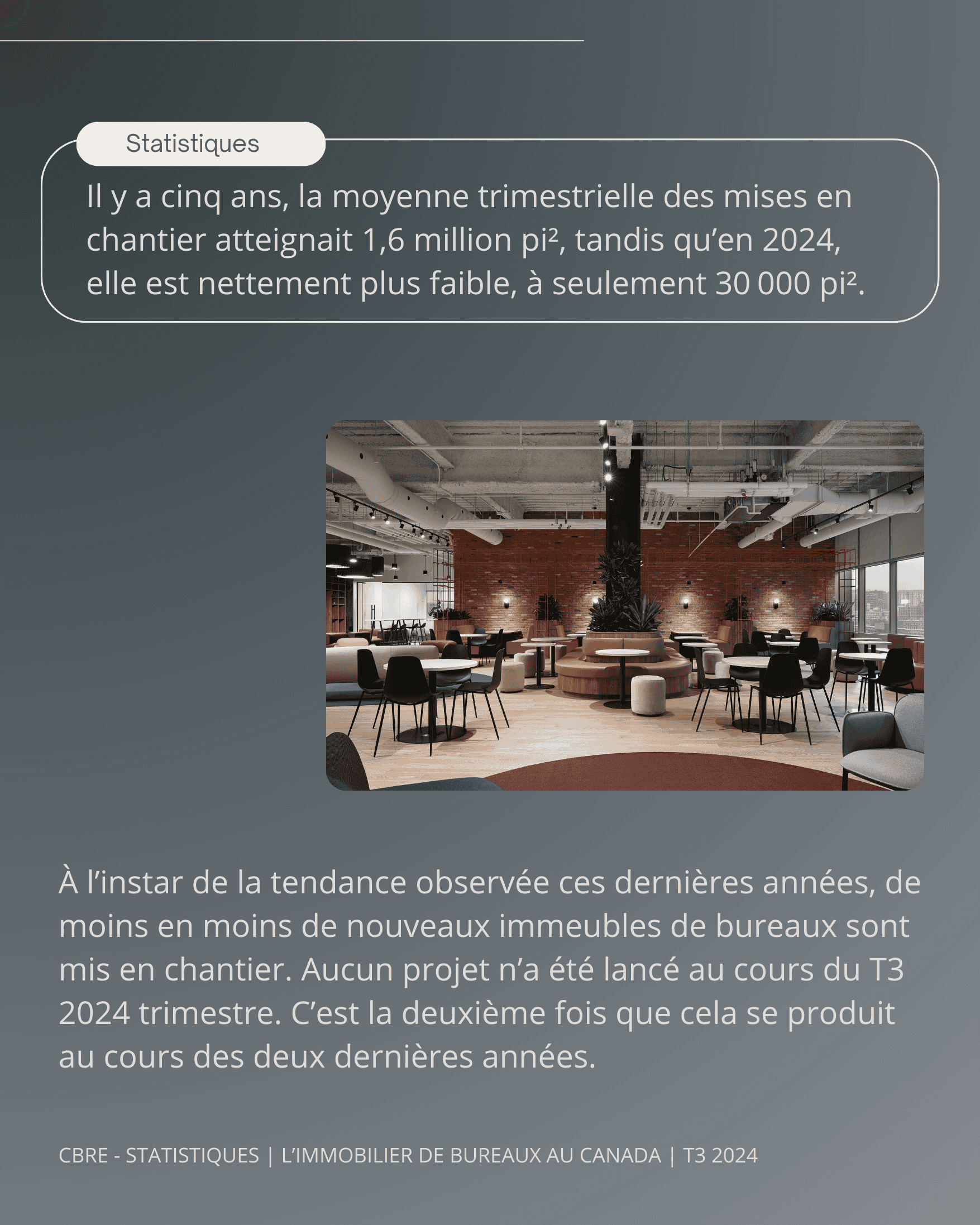 CBRE – STATISTIQUES | L’IMMOBILIER DE BUREAUX AU CANADA | T3 2024