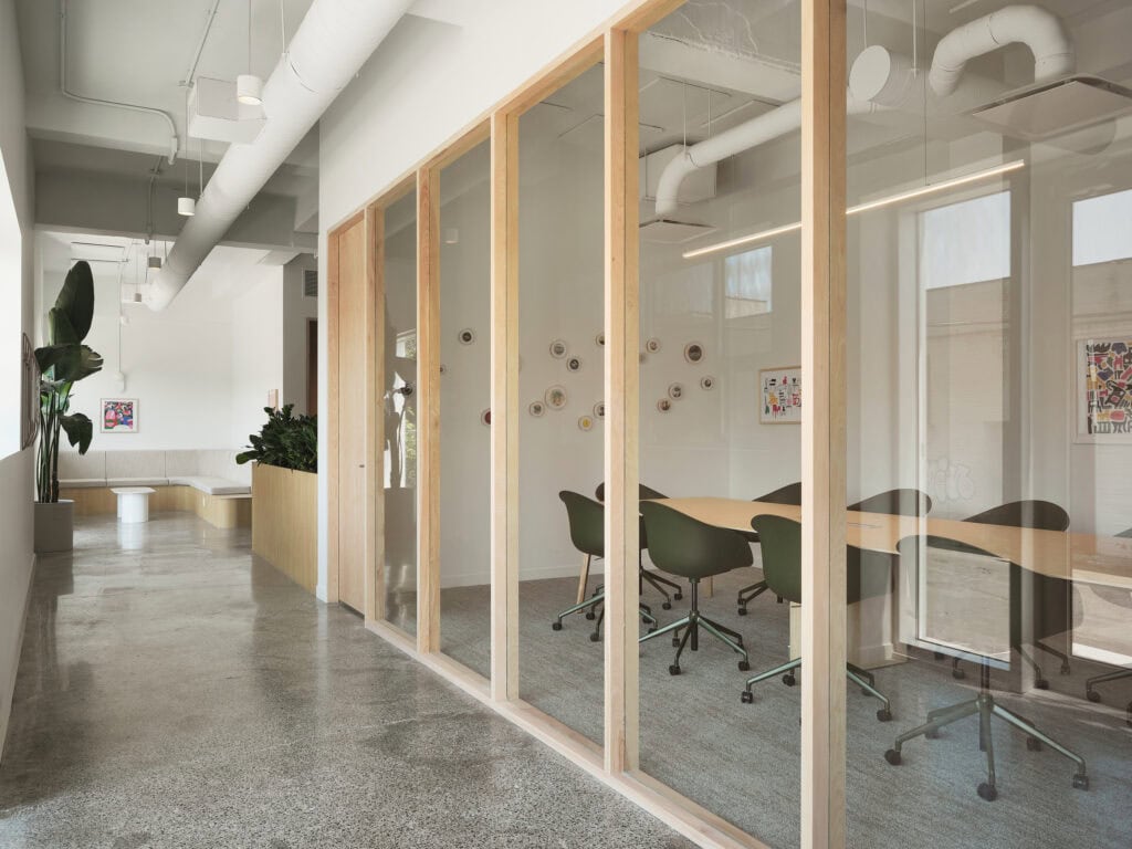 What sets our offices apart is their welcoming feel; several artworks on the walls evoke a sense of home and create a warm atmosphere. The concrete structure and the garage doors have been preserved to maintain the building’s authenticity. Every detail has been carefully selected to create an environment that inspires creativity and fosters productivity.