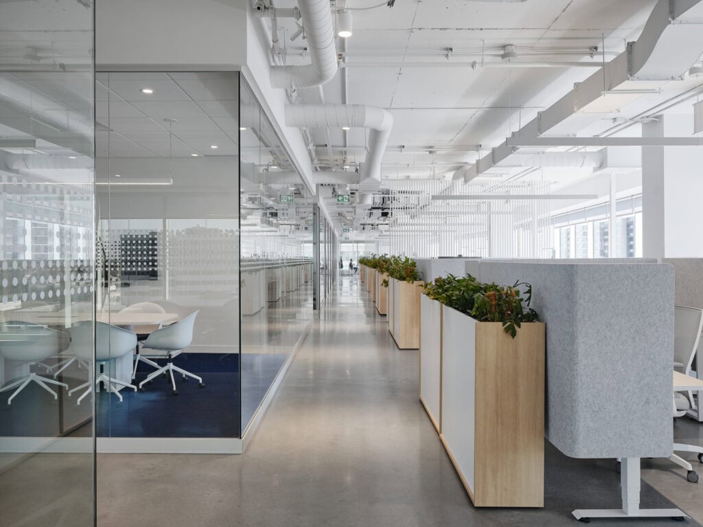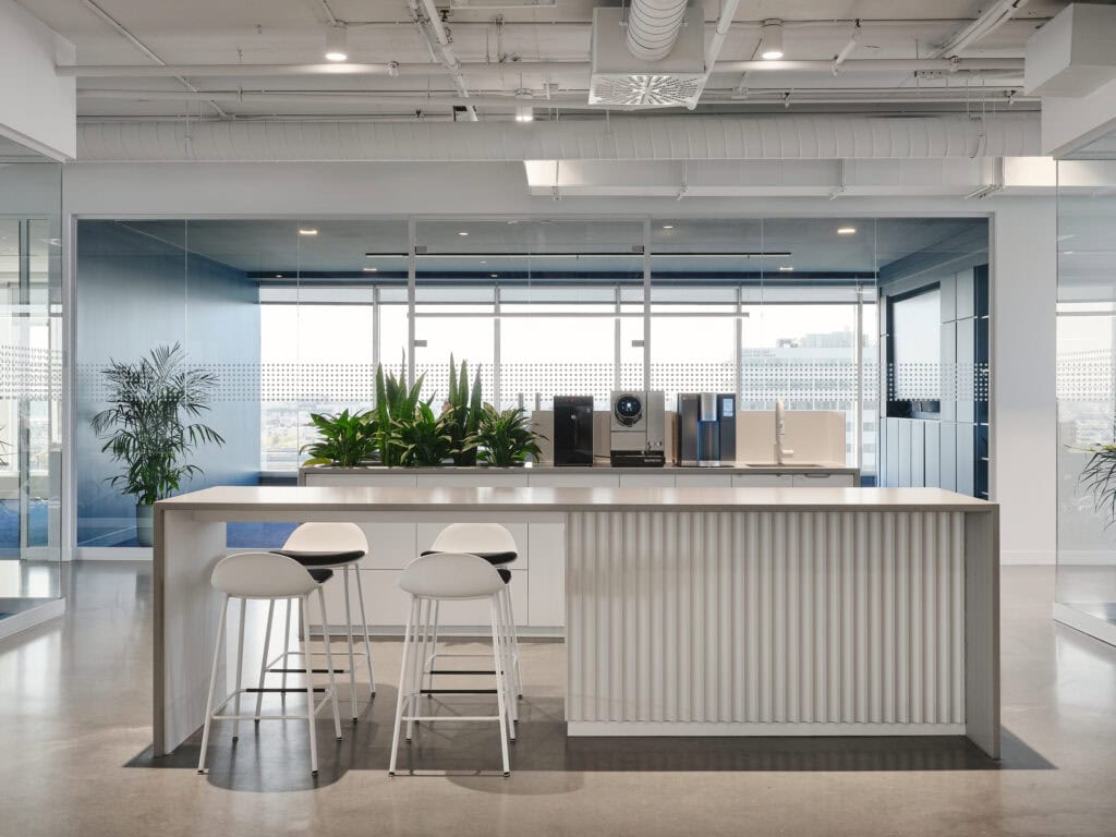 Eurovia Quebec aspired to transition to a new work environment, moving from a rather traditional setting to a more welcoming and contemporary space. To assist them in this transformation, our team leveraged its expertise in design and construction.
