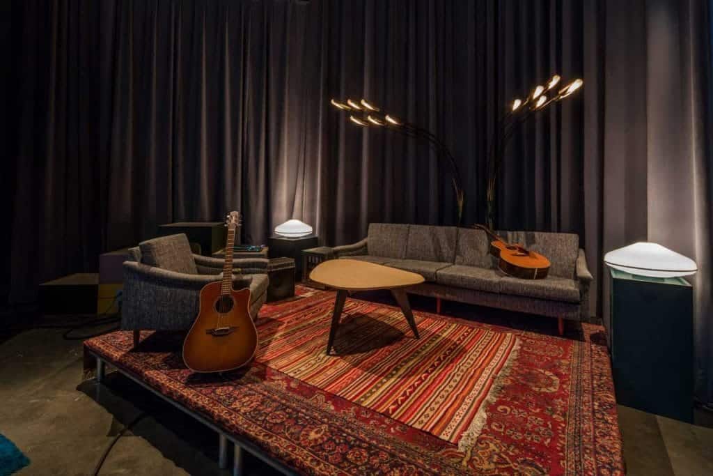In 2016, the Red Bull Music Academy came to Montreal to hold various events and concerts for one month. Fourteen specially designed studios had to be built extremely fast, i.e. in just 18 days, according to specific acoustic standards. Rest, interactive and dining areas also had to be built to accommodate the dozens of people who would participate in the event. The muted ambiance, soft lighting and gorgeous furnishings in the space were an inspiration to the musicians and artists who attended the festivities.