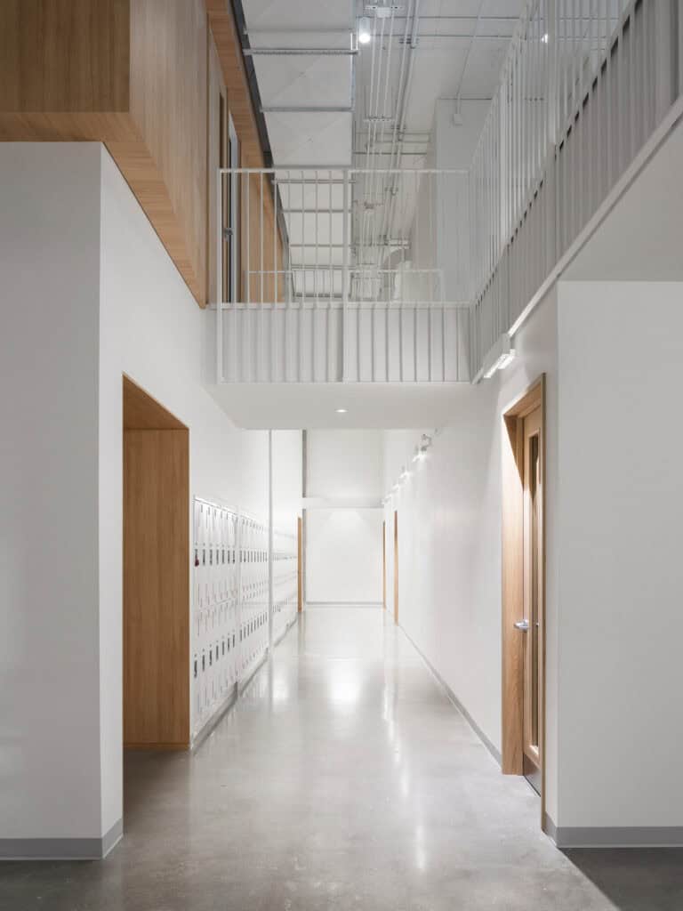 Institut Teccart is a college of technology, arts, and design. Located in Brossard’s Solar Uniquartier, the brief for this new school was ambitious. In addition to spacious, flexible classrooms, it needed cutting-edge labs and sewing workshops. The 33,000 sq ft campus also had to include places for interaction, work, and gatherings, relaxation zones, and multiple collaboration areas.