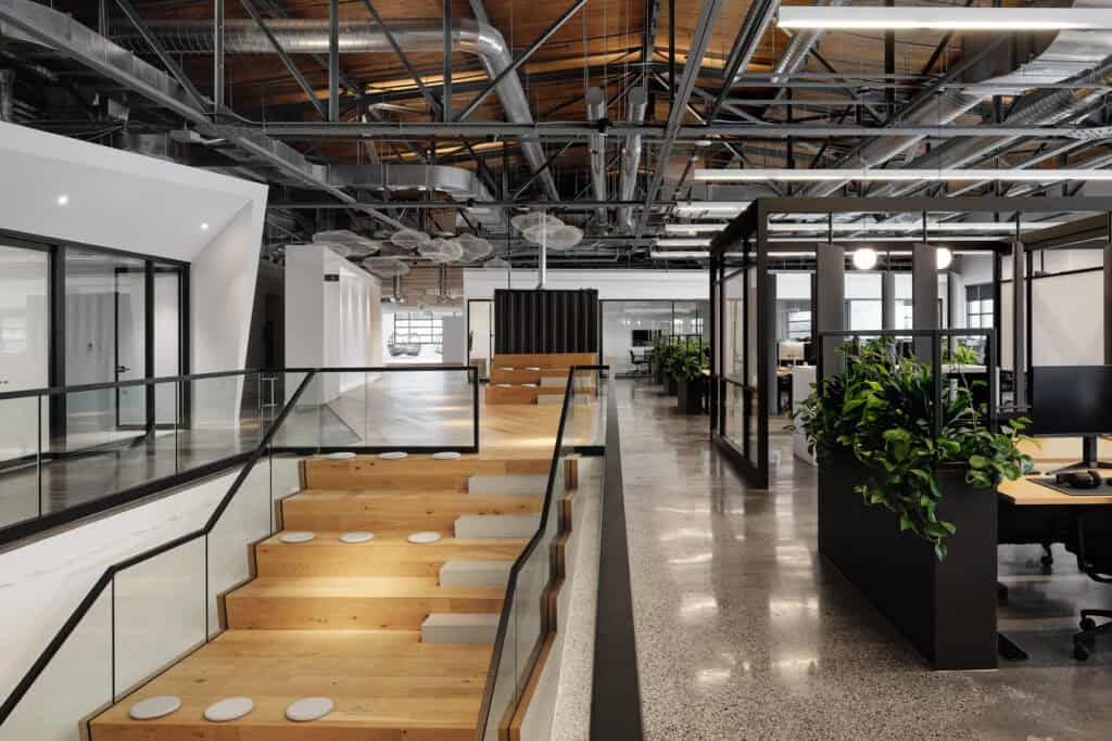 Nous avons proposé un concept minimaliste et moderniste qui se démarque de la concurrence dans l’industrie des jeux vidéo. L’environnement de travail est performant et acoustiquement adapté aux besoins de l’équipe. Nous avons également travaillé à minimiser l’impact environnemental en conservant un maximum d’éléments architecturaux existants, ce qui était une stratégie avantageuse aussi bien pour leur budget que pour l’environnement.