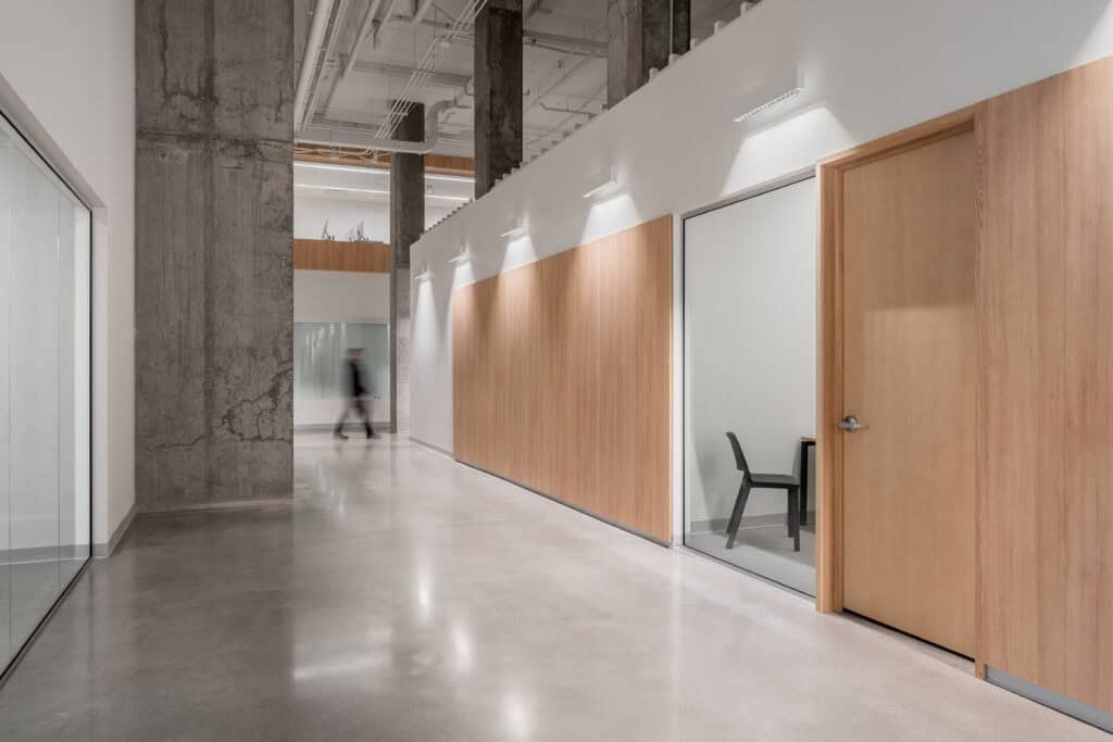 L’Institut Teccart est un collège de technologie, des arts et du design. Situé dans le Solar Uniquartier de Brossard, le programme pour la conception de cette nouvelle école était ambitieux. En plus de devoir comprendre des classes spacieuses et flexibles, des laboratoires de pointe et des ateliers de couture, le collège de 33 000 pi2 devait comprendre des lieux d’échanges, de travail et de rassemblements, des zones de détente ainsi que plusieurs espaces de collaborations. L’objectif était de créer plus qu’un simple lieu d’apprentissage; l’environnement se devait d’être stimulant, où chaque élément architectural contribue à inspirer les étudiants et le personnel. Grâce à notre Gestion de projet collaborative intégrée (GPCI), nous avons réussi à accompagner le client dans sa mission d’offrir un superbe environnement de travail à ses futurs élèves avec des budgets contrôlés, optimisés et un échéancier respecté!