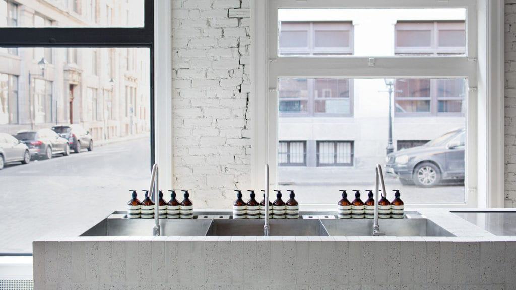Un design unique de la boutique Aesop dans le Vieux Montréal. Un aménagement de pur raffinement!