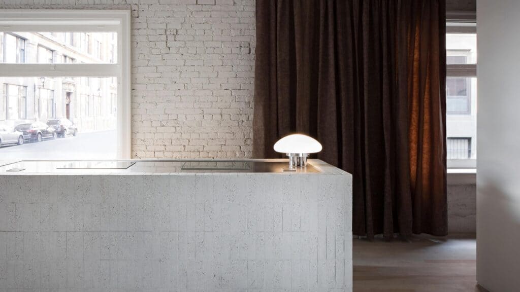 Nous avons travaillé avec la marque australienne Aesop sur l’aménagement de leur boutique située dans un immeuble historique dans le Vieux-Montréal. La boutique conserve plusieurs détails d’origine et utilise des matériaux bruts tout en incorporant du mobilier contemporain construit sur mesure. Malgré les délais serrés, la coordination des différents fournisseurs et des corps de métier, nous avons réussi à achever le projet en seulement cinq semaines.
