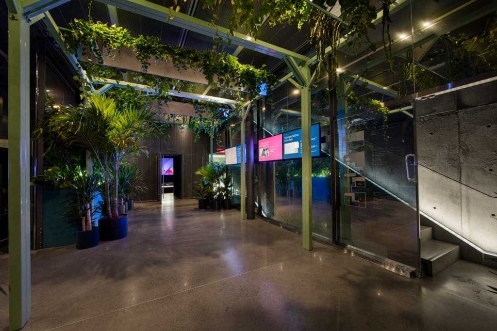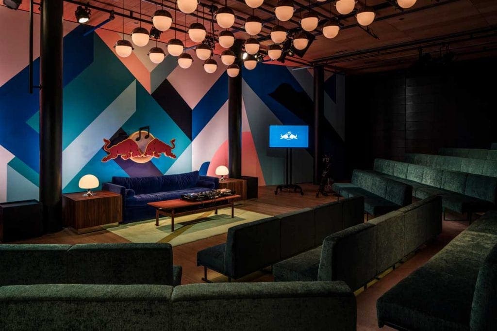 L’espace d’un mois en 2016, la Red Bull Music Academy faisait escale à Montréal pour y tenir différents événements et concerts. En 18 jours et à un rythme effréné, il a fallu construire quatorze studios au design unique et aux normes acoustiques précises ainsi que plusieurs espaces de détente, zones interactives et aires de repas pour accueillir les dizaines de personnes qui participeraient à l’événement. L’ambiance feutrée, les éclairages tamisés et la beauté du mobilier de l’espace ont su inspirer les musiciens et créateurs qui ont assisté aux festivités.