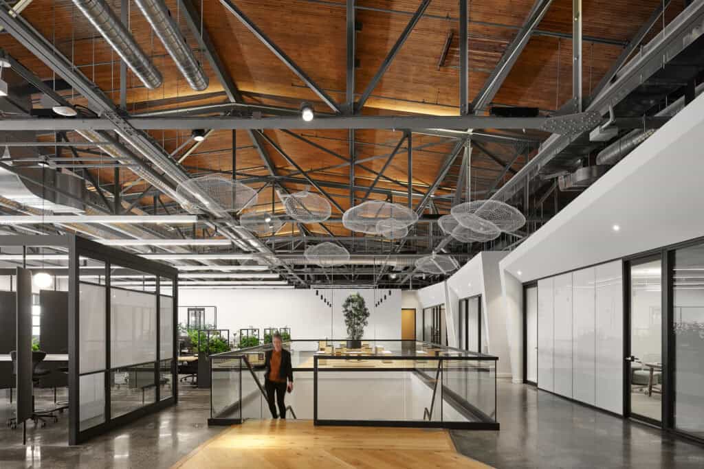 Nous avons proposé un concept minimaliste et moderniste qui se démarque de la concurrence dans l’industrie des jeux vidéo. L’environnement de travail est performant et acoustiquement adapté aux besoins de l’équipe. Nous avons également travaillé à minimiser l’impact environnemental en conservant un maximum d’éléments architecturaux existants, ce qui était une stratégie avantageuse aussi bien pour leur budget que pour l’environnement.